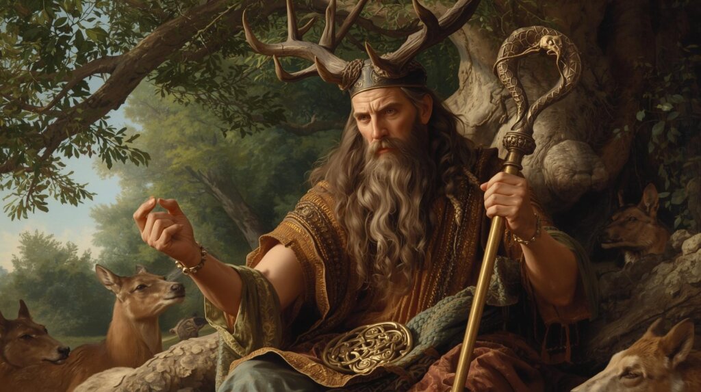 - Cernunnos: O “Senhor dos Animais”. Com seus chifres de cervo, ele guarda a fauna e a flora. É o símbolo da fertilidade e da energia vital da floresta profunda.