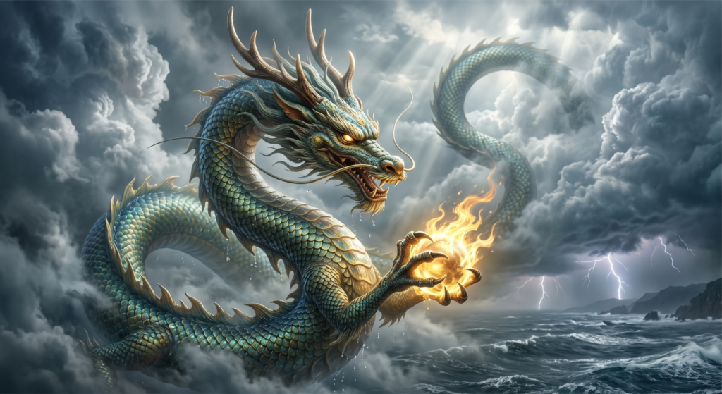 1. Loong (Dragão Chinês): Diferente do dragão ocidental, ele é uma criatura benevolente, mestre da água e do tempo. Possui corpo de serpente, escamas de peixe e chifres de cervo.