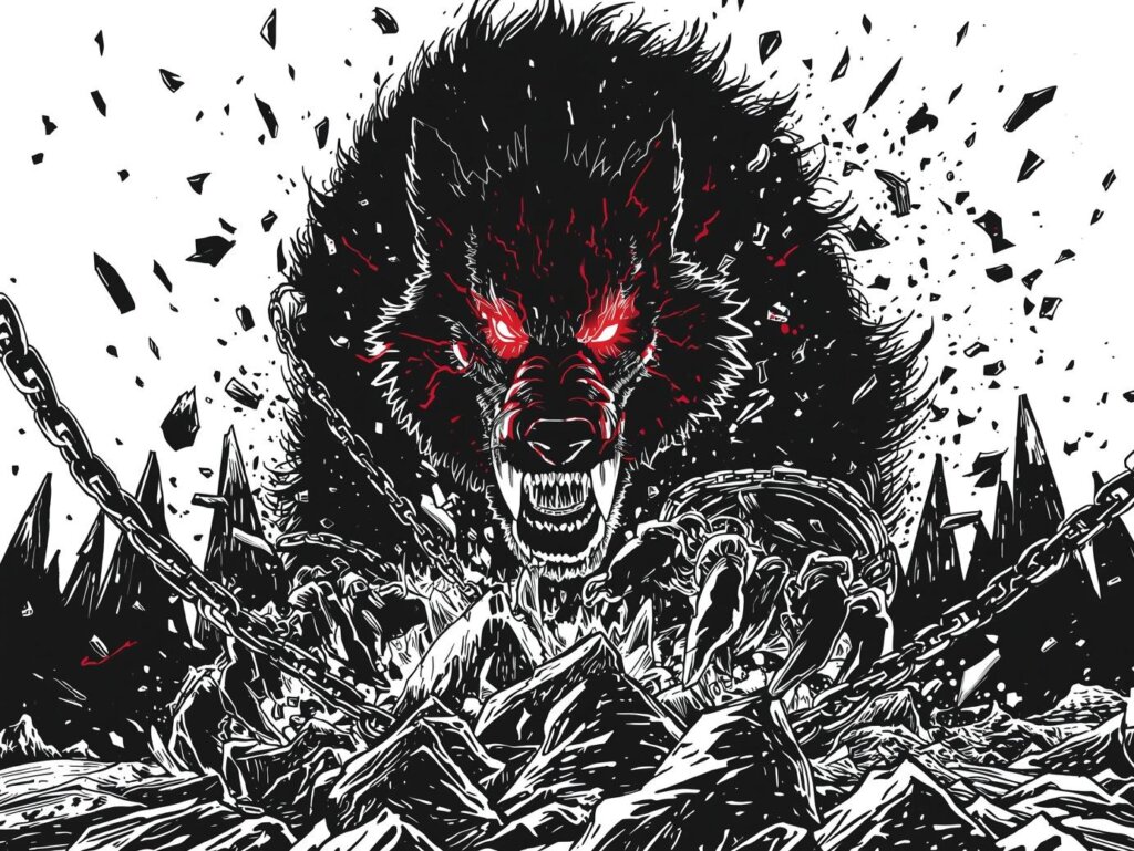 - Fenrir: O lobo colossal filho de Loki, que cresceu tanto que os deuses tiveram que acorrentá-lo. É destinado a devorar Odin no Ragnarök.