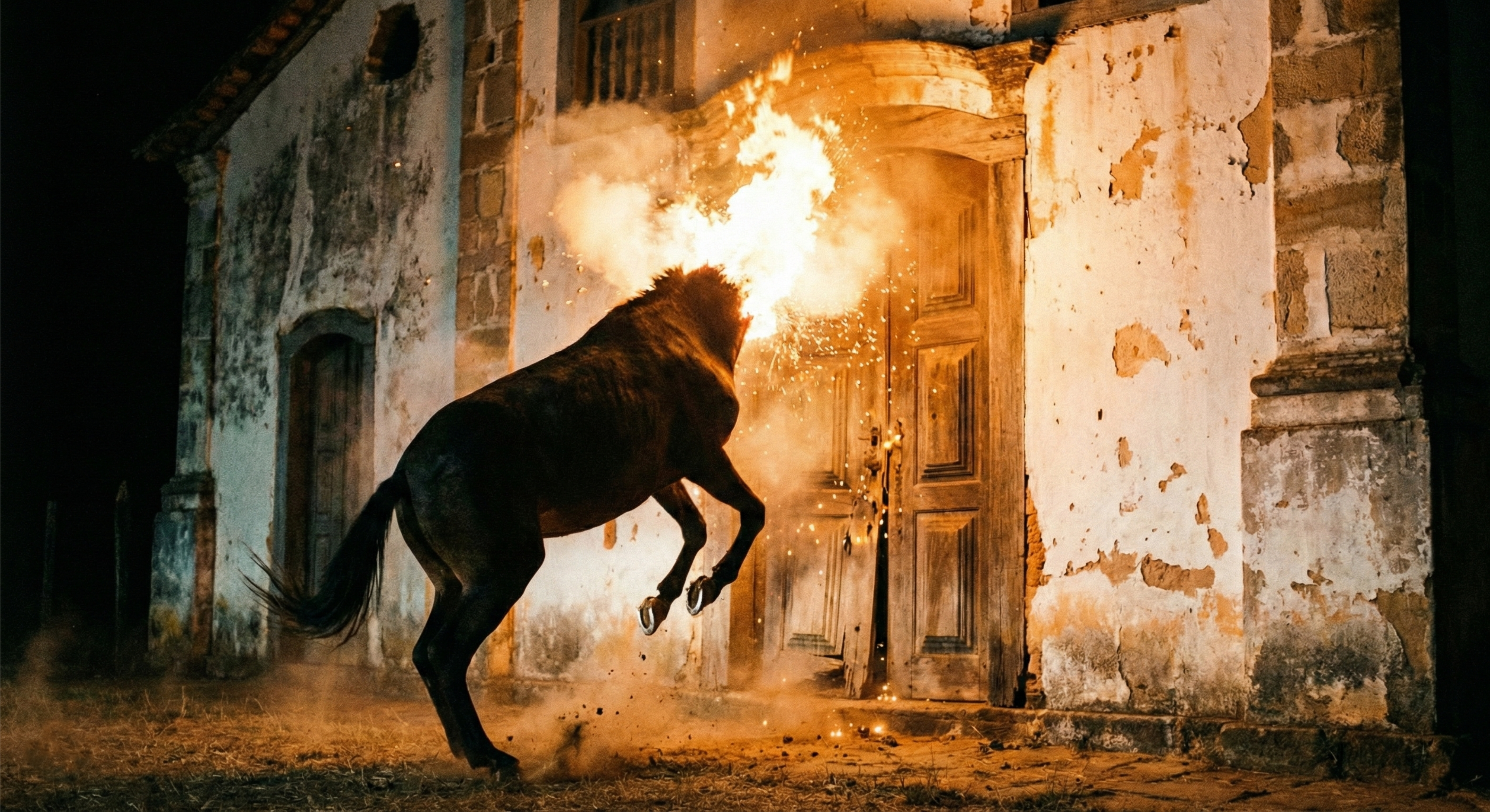 Onde deveria haver uma cabeça, há apenas o inferno. Um jato de fogo que ilumina a copa das árvores e cega quem ousa olhar. O relincho é o som mais triste e aterrorizante do mundo: o grito de alguém que queima sem morrer.